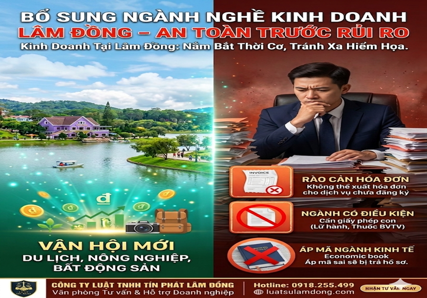 22/04/2026 7Lâm Đồng đang chuyển mình mạnh mẽ với những vận hội mới trong lĩnh vực du lịch, nông nghiệp bền vững và bất động sản. Để nắm bắt thời cơ, việc mở rộng danh mục kinh doanh là bước đi tất yếu. Tuy nhiên, để “vươn mình” một cách an toàn, doanh nghiệp cần một nền tảng pháp lý vững chắc ngay từ bước đăng ký ngành nghề.