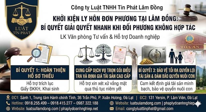 Công ty Luật TNHH Tín Phát Lâm Đồng cung cấp dịch vụ ly hôn trọn gói, giúp khách hàng giải quyết mọi việc một cách nhẹ nhàng, kín đáo và hiệu quả.