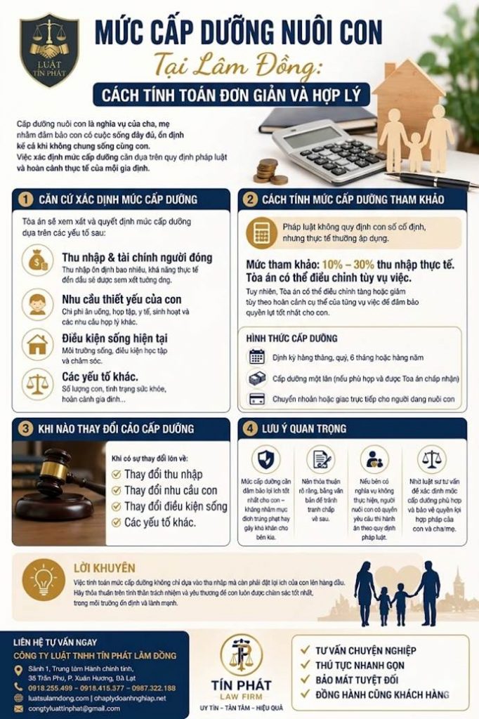 24/04/2026 3Việc xác định mức cấp dưỡng nuôi con sau ly hôn không chỉ là nghĩa vụ pháp lý mà còn là sự đảm bảo cho tương lai của trẻ. Tại khu vực Lâm Đồng, dù pháp luật không quy định một con số cố định, nhưng mức cấp dưỡng thường được tính toán dựa trên sự giao thoa giữa nhu cầu của trẻ và khả năng tài chính của người thực hiện nghĩa vụ.